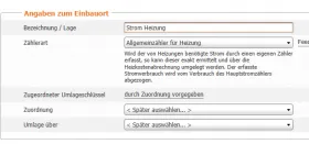 Wie die Eingabe im Programm genau funktioniert, habe ich auch noch nicht herausgefunden. Ich weiß nicht ob die Zuordnung der Zähler so verwendet werden kann, oder ob dazu die Anlage einer zusätzlichen Kostenart mit Zuordnung zur Heizanlage nötig ist.