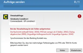 Kontozugriff bei comdirect funktioniert nicht (BLZ 20041133)
