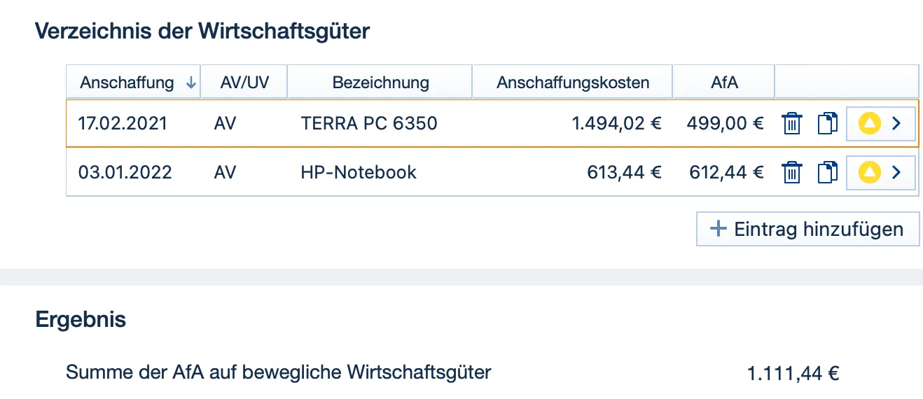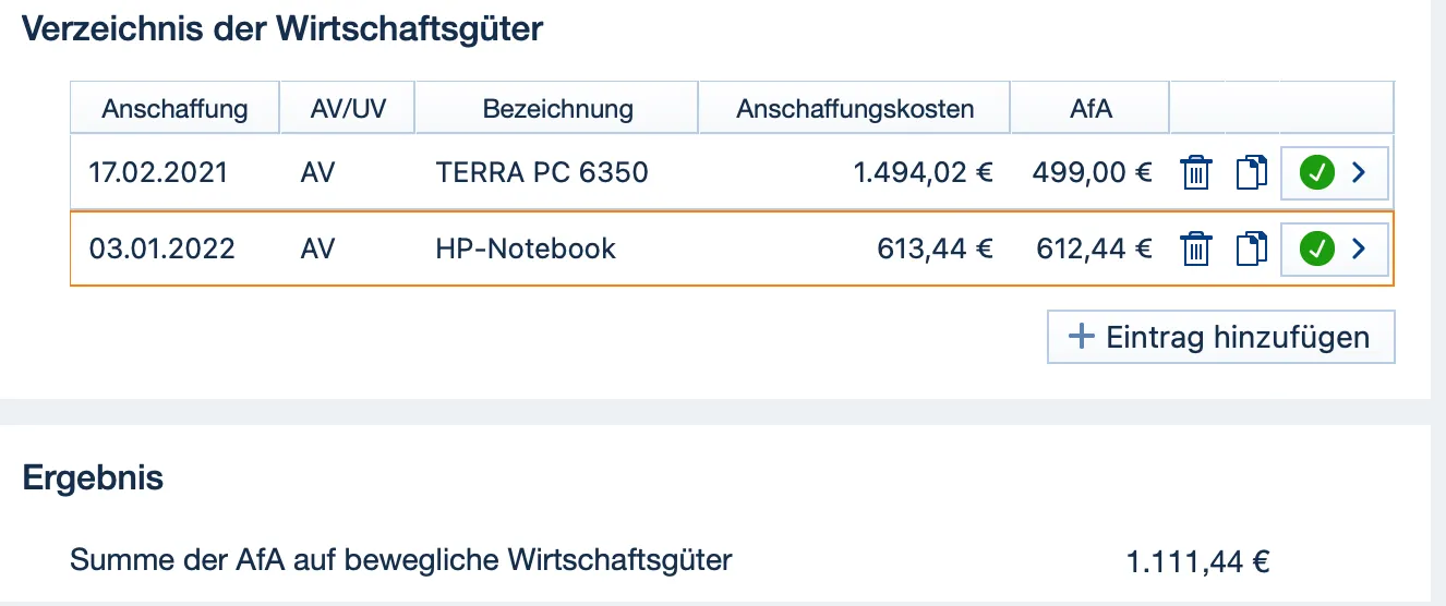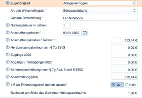 Der einzigste Punkt ist noch die Abschreibung des Terra PC. Habe mal in 2021 reingeschaut, dort ist alles gut gelaufen, also keine Fehler.Die Daten wurden in die Kasse übertragen und auch jetzt in die WISO Steuer.
