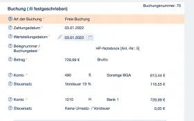 Hier mal die Buchung 2021, wobei die AfA - Buchung nicht vor