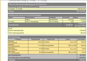 Dieser Zählerstand von 1067 kW/h wird zwar in der Abrechnung für unsere Mieterin aufgezählt. Bei der Abrechnung wird anscheinend aber nur der Wärmemengenzählerstand der Heizung berechnet.