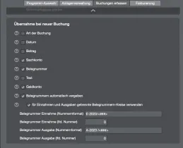 Für eine Einnahme soll er E-2023### und für eine Ausgabe soll er A-2023### erstellen. So lange ich nur über Buchungen arbeite tut er das auch wunderbar und zählt schön hoch. Für Rechnungen die an Kunden gehen habe ich eingestellt RE-### 2023 (Siehe Bild 3)![]()