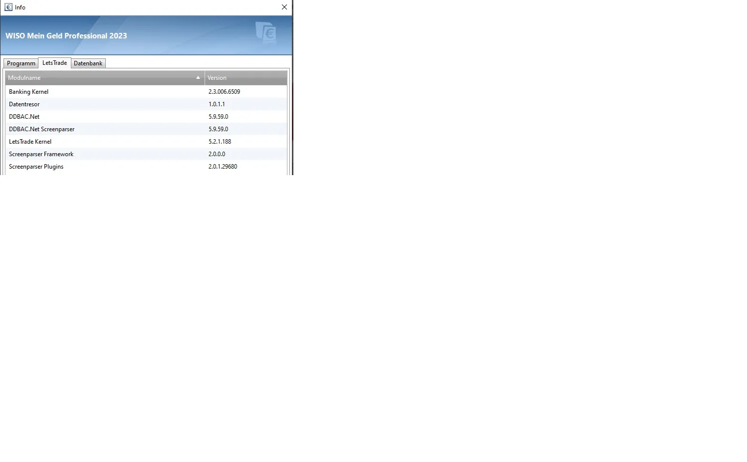 Welche Mein Geld und welche LetsTrade-Version hast Du? Wie sieht es im Webbanking aus? Welche Zugangsart?