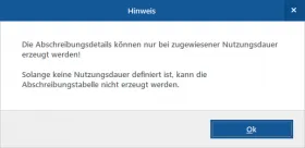 Wenn ich beim obigen Beispiel die Nutzungsdauer auf "0 Jahre" ändere beschwert sich WMB.