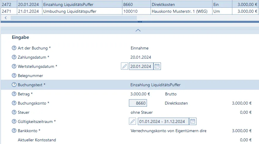 wie verbucht Ihr eigentlich im Hausverwalter eine Einmalzahlung oder mehrere anteilige Zahlungen, mit denen das Hausgeldkonto aufgestockt werden soll, um etwas mehr Puffer für Abbuchungen jeder Art zu haben? Ziel ist es, das Konto nicht in den Dispo laufen zu lassen.