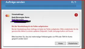 Norwegian Kreditkartenkonto Fehlermeldung "credit card page not found""