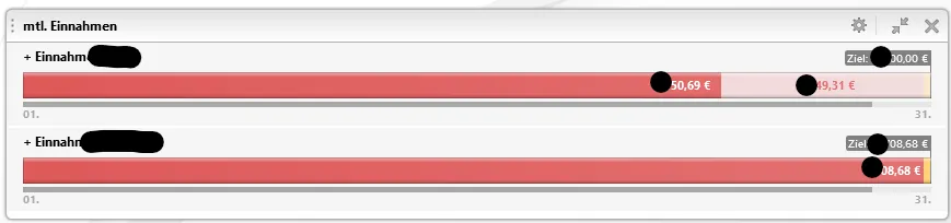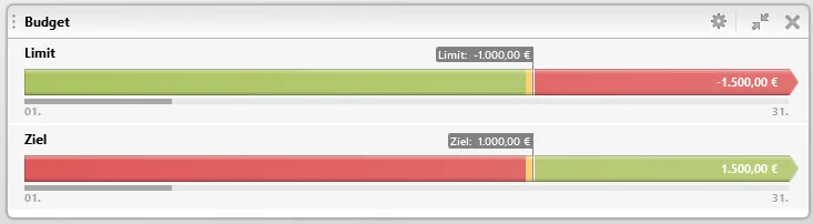 Und es gibt eben Fälle, wo der "Umschlag" auf Rot ebenso sinnvoll ist. Wie Hoschie schon schrieb: kann man so oder so sehen. Das Limit bezieht sich auf Ausgaben und das Ziel auf Einnahmen. Grün/rot symbolisiert hier nur eine Unter-/Überschreitung.
