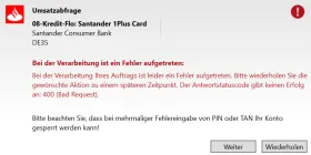 ich habe seit Januar das Problem, dass die Santander-Buchungen meiner Kreditkarte nicht mehr abgrufen werden und zwar schlägt der vorgang nach der erfolgreichen Freigabe im "santander Sign" fehl.