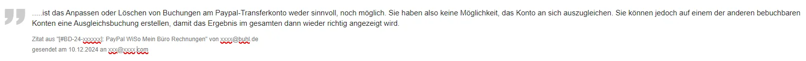 Das PayPal Transfer ist seit Einrichtung vor 6 Wochen mit ~ 8000,- € ( Dynamisch um ein paar Euronen ) im Minus, das PayPal Transferkonto kann jedoch die Buchungen nicht automatisch zuordnen weil vielleicht die Bankkonten nicht bis in Jahr 2021 zurück Buchungen haben. Nun wird dieser negative Saldo vom Saldo "Alle Konten" abgezogen, der ist dann unbegründet für mich um ~8000,- € zu niedrig. Das PayPal Konto an-sich ist richtigerweise auf Null.