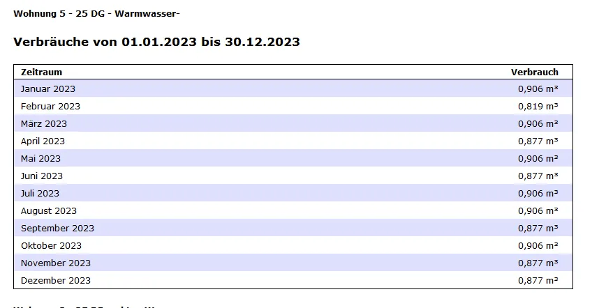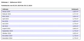 Es wird bisher nur der monatliche Verbrauch je Wohnung angezeigt.
