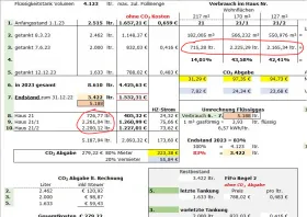 - Wenn ich zum Jahresende 2023 den Tank noch einmal vollgetankt habe, dann erfasse ich dort die 5.500 ltr mit dem entsprechenden Wert?