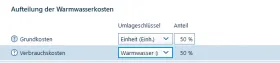 ich möchte in einem 3-Parteien-Haus die Warmwasserkosten zu 100 % nur einer Partei (Erdgeschoß) zuordnen, da die beiden anderen Parteien ihr Warmwasser über Durchlauferhitzer beziehen. Warmwasseruhr sowie Wärmemengenzähler sind installiert.