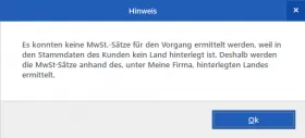 Ich weiß nicht wo das Problem liegt, da im Kundenstammdatensatz ein Land hinterlegt ist.