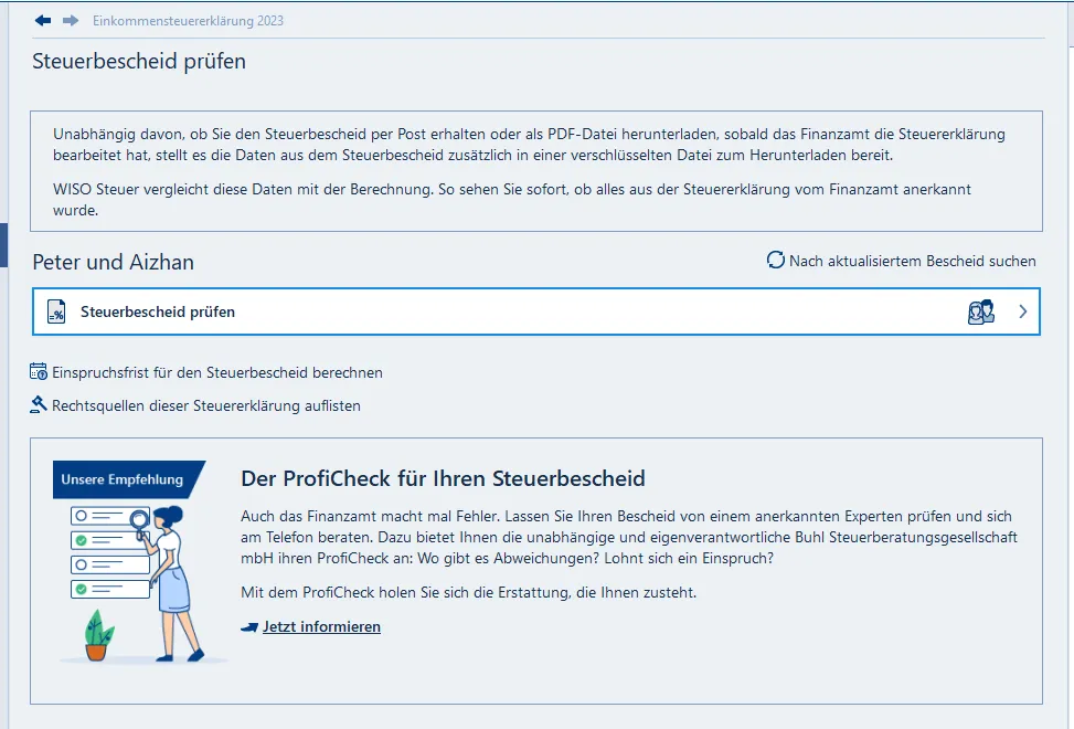 Wiso Steuer bietet die schöne Möglichkeit, die elektronischen Steuerbescheide des Finanzamts per Elster abzuholen und die Daten des Bescheids mit den vom Programm errechneten Daten zu vergleichen. Das funktioniert auch.