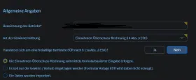 Angaben unter Einkünfte: Art der Gewinnermittlung => EüR