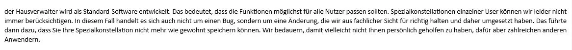 Leider wurde das beim letzten Update letzter Woche nicht behoben. Ich habe daraufhin den Support angeschrieben udn das Problem geschildert, das war meine Frage: