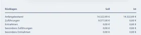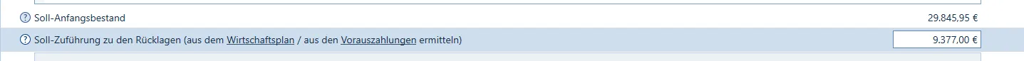 Unter "Angaben zu den Rücklagen" ist ja eine Soll/Ist-Aufstellung dargestellt. Der Anfangsstand wurde automatisch ermittelt (entsprechend dem Abrechnungszeitraum und dem entsprechenden Kontostand vom Bankkonto bzw. dem 8820 Konto). Nun wird aber der Ist-Stand nicht ermittelt: ![]()