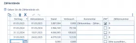 ich habe einen Hauptzähler für Wasser und 8 Wohnungszähler angelegt. Der Abrechnungszeitraum der WEG ist 01. April bis 31. März. Der Wasserversorger hat am 25.02. den Zählerstand vom Hauptwasserzähler erfasst. WEG hat entsprechend ebenfalls die Wohnungszähler abgelesen. Hier ein Beispiel: