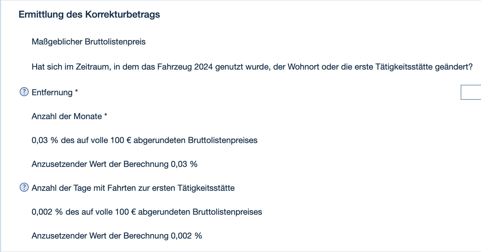 im Rahmen der Einkommenssteuererklärung für das Jahr 2024 bin ich gerade dabei mit WISO im Bereich Arbeitnehmer / Lohnsteuerbescheinigungen die "Korrektur Besteuerung von Dienstwagen" auszufüllen, da ich statt der 0,03% Pauschale die Einzelbewertung verwenden möchte. Nun ist die Besonderheit, dass ich im Monat Januar den Dienstwagen gewechselt habe (2 Tage den alten, 3 Tage den neuen). Die Bruttolistenpreise unterscheiden sich natürlich auch, weshalb ich in WISO zwei Fahrzeug-Einträge erfasst habe. Was muss ich aber nun bei "Anzahl der Monate" beim jeweiligen Dienstwagen eintragen? Ich habe versucht für Dienstwagen Nr. 1 als Anzahl "1" zu hinterlegen und für Dienstwagen Nr. 2 als Anzahl "12", komme damit aber am Ende nicht auf den richtigen Korrekturbetrag. Gibt es hier noch weitere Möglichkeiten? Ansonsten wäre mein Plan den Korrekturbetrag manuell als separate Lohnsteuerbescheinigung mit negativem Bruttoarbeitslohn zu erfassen.