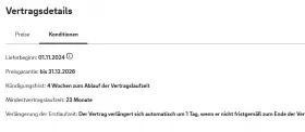 Was nicht stimmt sind die errechneten Datumsangaben für "kündbar bis" und "frühestes Vertragsende", denn Mein Geld berücksichtigt aktuell keine Mindestvertragszeit.