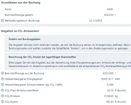 Wenn ich mir nur die Heizkostenabrechnung ansehe, erscheint bei den CO2-Kosten für das Gebäude ein viel zu hoher Betrag, nämlich 606,70 EUR.