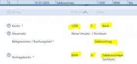 Letztes Jahr war die Saldovortragsbuchung auf Konto 1200 S, dieses Jahr ist er auf Konto 1200 H.