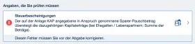 ich bekomme folgende Fehlermeldung bei der Prüfung der Steuererklärung: