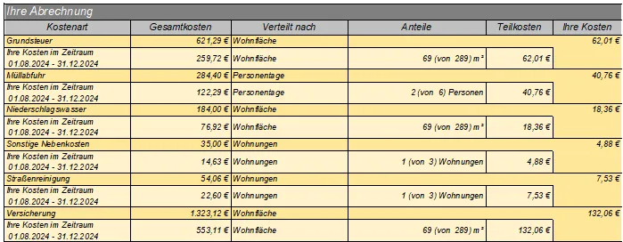 Die Berechnung der Gesamtkosten ist bei einem Mieterwechsel nicht korrekt (siehe Bild):