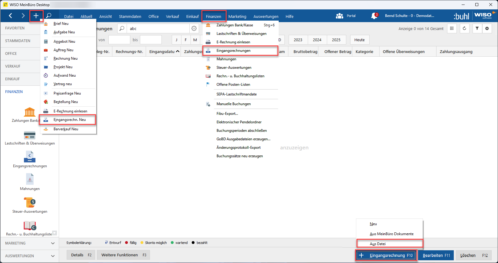Der Zufall wollte es, dass mir eine ZUGFeRD-Rg. vorliegt und ich die Funktion der Eingangsrechnung aus E-Rechnung testen wollte.