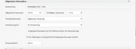 Leider überträgt er im Feld "Angaben zur Umsatzsteuer" einen Falsche Bezeichnung. "Nämlich Umsatzsteuerfrei Umsätze ohne Vorsteuerabzug"