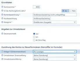 um für mein Mietobjekt die wiederkehrenden Straßenausbaubeiträge zu verbuchen, habe ich ein eigenes Konto im WISO Hausverwalter angelegt.