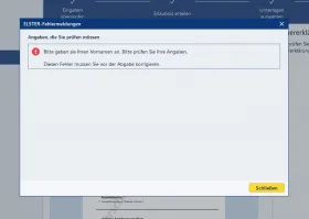 Angeblich fehlt der Vorname. Denn soll ich eintragen .... es steht nicht wo er fehlt
