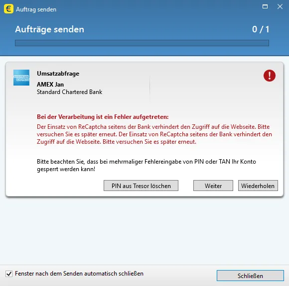 Das liegt wahrscheinlich daran, dass die Finanzsoftware jedes Fenster als ReCaptcha interpretiert.