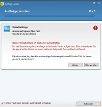Aktuell lässt sich kein Umsatzabruf von American Express Kreditarten durchführen. Es erscheint eine Fehlermeldung "Account text not found"