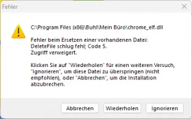 Ich bekomme das aktuelle Update 25.02.01.001 einfach nicht installiert. Es kommt immer die Fehlermeldung, dass der Zugriff auf chrome_elf.dll verweigert wird.