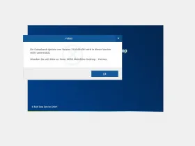 Mandant 1 und 2 sind mit der neuesten Version versehen. Wenn ich auf Mandant 3 wechseln möchte, erscheint ein Fenster mit folgendem Inhalt: Ein Datenbank-Update von Version 21.05.001.001 wird in dieser Version nicht unterstützt. Wenden Sie sich bittean Ihren WISO MeinBüro-Partner.