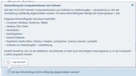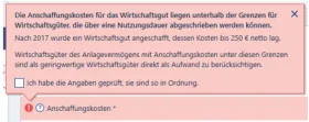 Klicke ich das Kontrollkästchen an, akzeptiere ich die Meldung und es ändert sich nichts an meinem Eintrag. Funktioniert die Abschreibung für das Wirtschaftsgut trotzdem, oder sagt diese Meldung aus, dass das Wirtschaftsgut sonst grundsätzlich nicht abgeschrieben wird?