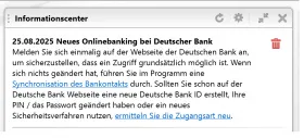 12. August 2025 um 16:49 Hat den Titel des Themas von „Ende sms/TAN / mobileTAN“ zu „Demnächst Ende smsTAN / mobileTAN“ geändert. -