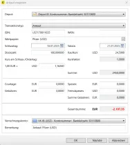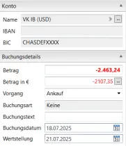 Im Referenzkonto (USD) sehe ich nun eine Buchung von 2463,24 US-Dollar, die weder etwas mit dem US-Dollar Kurs noch mit dem Euro Kurs zu tun hat.