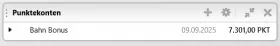 .... während in der Konto-/Buchungsübersicht der korrekte aktuelle Punktestand angezeigt wird: