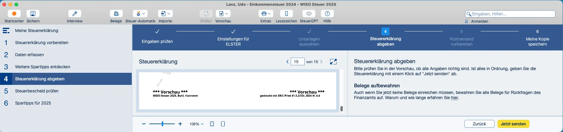 Meine Steuererklärung ist zur Abgabe bereit, ohne Fehler und geprüft..