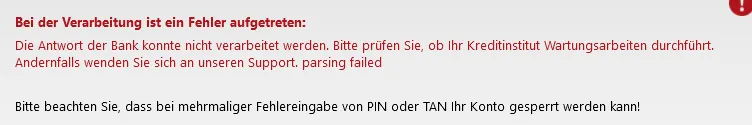 Kontoaktualisierung bei der C24 nicht mehr möglich