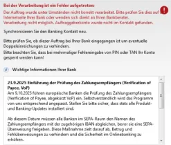 vor kurzer Zeit wurde ja eingeführt, dass die Empfängernamen bei Überweisungen überprüft werden und übereinstimmen müssen.