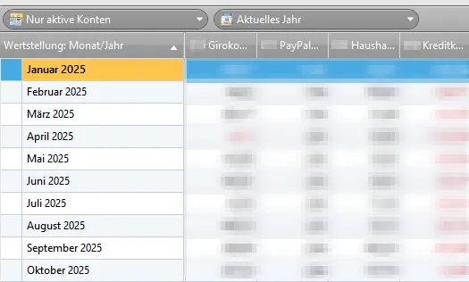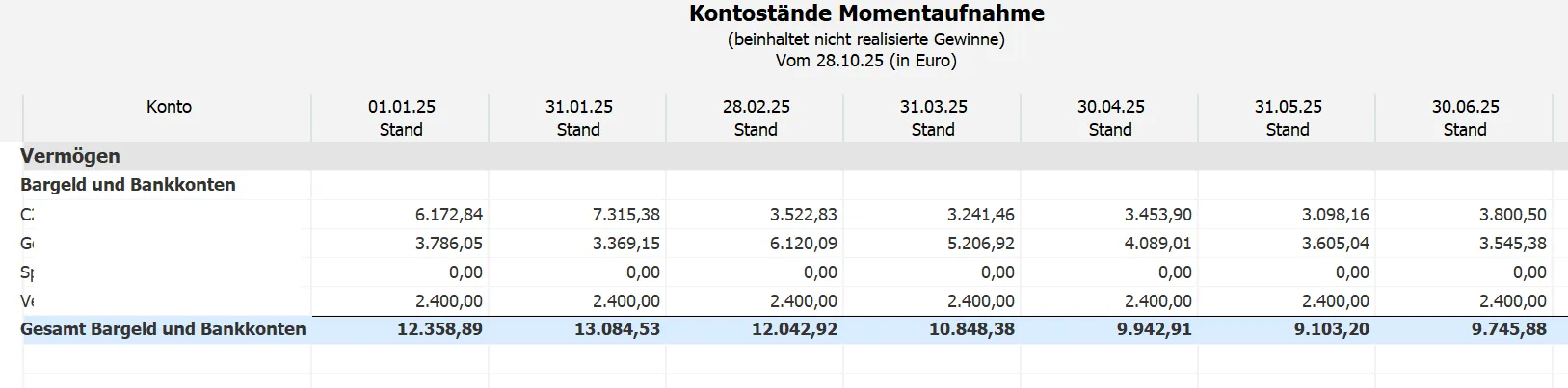 Klicks eine aussagekräftige Darstellung der z.B. monatlichen Kontensalden über eine Zeitraum