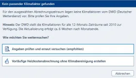 Hallo, bei mir kommt eine Meldung, dass keine Klimafaktoren vorliegen würden. Und ich soll die Angaben prüfen.