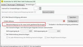 Obwohl ich eingestellt habe, dass ich nur bei "neuen" Buchungen ein E-Mail haben möchte, sendet mir der Konto-Ticker bei jedem einschalten des PC´s die letzte Mail immer wieder.