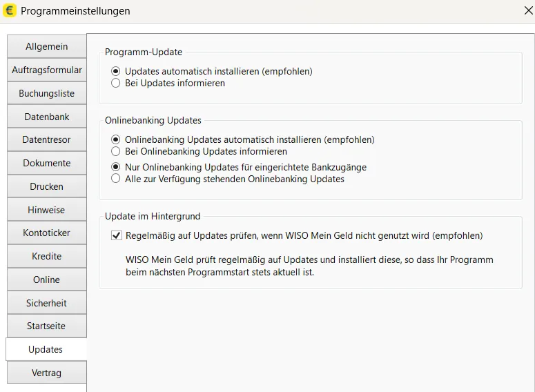 Bin daher eigentlich davon ausgegangen, daß sich das Programm automatisch updated. Ich vermute nun nach deinen Ausführungen jedoch, daß mit Onlinebanking- und Programmupdates nicht LT gemeint ist... wie kann man die automatische Aktualisierung aktivieren?