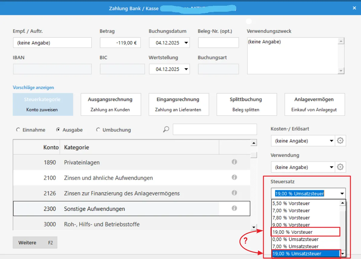 mein Steuerberater hat auf der Saldenliste eine Differenz zwischen den Summen der Konten 8400 und 8405 und der daraus resultierenden UmSt ermittelt.