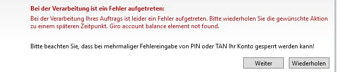 Hatte am Wochenende auch den Fehler "Logout button not found". Jetzt mit Version 126 bekomme ich Fehlermeldung 9040 - Anmeldung fehlgeschlagen. BLZ ist die 12070070