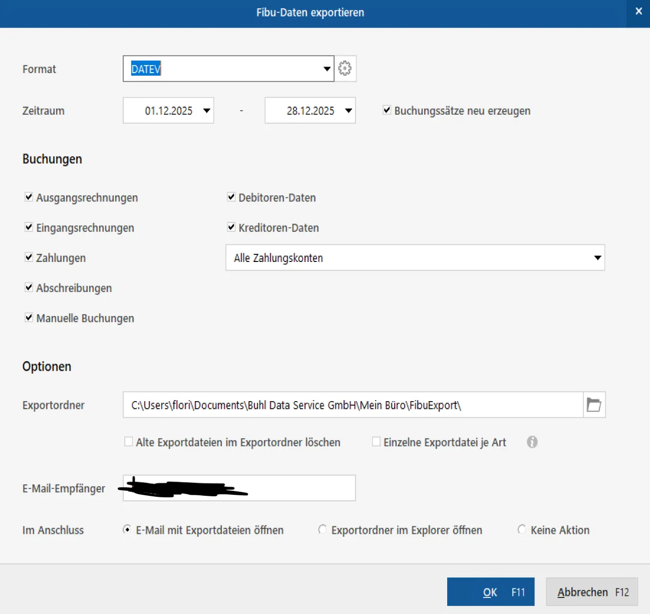 ich habe bis jetzt jeden Monat einen Fibu Export gemacht und an meinen Steuerberater geschickt.